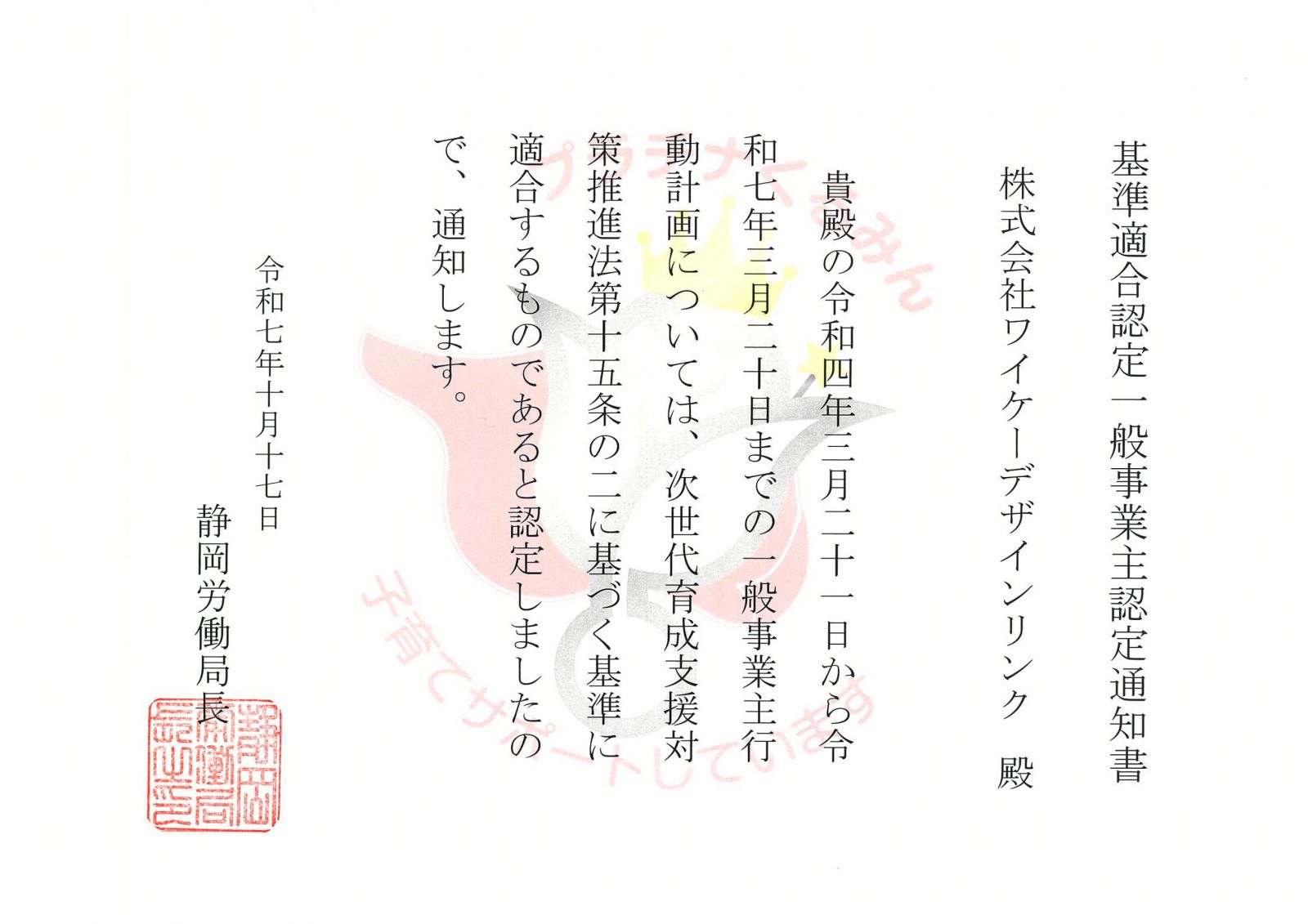 | 2025/10/17 | 認定 | プラチナくるみん認定 | 静岡労働局 |