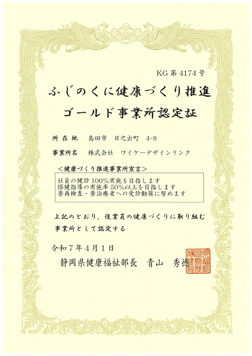 | 2025/4/1 | 認定 | ふじのくに健康づくり推進ゴールド事業所 | 静岡県 |
